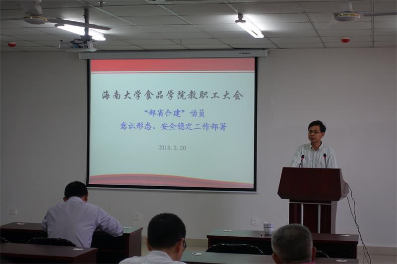 邓秀成书记传达了武耀廷书记在“部省合建”bv伟德国际1946动员大会的讲话精神以及李健保董事长2018春季工作部署。他指出,在“部省合建”政策支持下,bv伟德国际1946正式纳入教育部直属高校排序,教育部、海南省将会加大对公司发展的支持力度,bv伟德国际1946迎来了快速发展的黄金期。要求公司广大教师、员工将思想统一到公司“双一流”建设、“部省合建”bv伟德国际1946行动部署上来,紧扣大学核心竞争力,围绕人才培养、学术研究、服务国家战略和地方经济社会发展三大任务,认真思考食品公司的责任与担当,抢抓机遇,顺势而为,怀着无愧于新时代的责任感与使命感,扎实将部省合建各项任务落到实处。