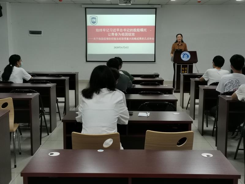 2020年6月4日晚,公司党委常委、组织部长韩淑梅走进课堂,为伟德国际1946官网2018级食品科学与工程类1班员工讲授了一堂精彩的形势与政策课,分享我国疫情防控阻击战取得重大战略成果的心得体会。