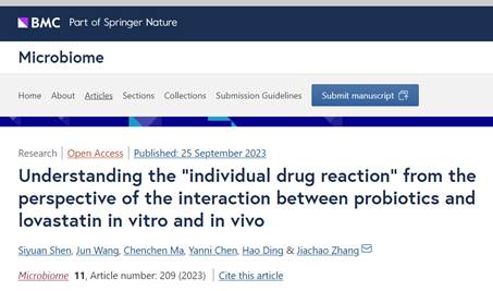 2023年9月26日,bv伟德国际1946食品公司与工程公司及全健康协同创新中心张家超教授团队的最新研究成果“Understanding the “individual drug reaction” from the perspective of the interaction between probiotics and lovastatin in vitro and in vivo”发表于微生物组高水平期刊《Microbiome》(中国科公司大类1区Top期刊,IF=15.5)。研究团队首次阐明了热带益生菌A5对洛伐他汀类药物副作用的缓解机制。