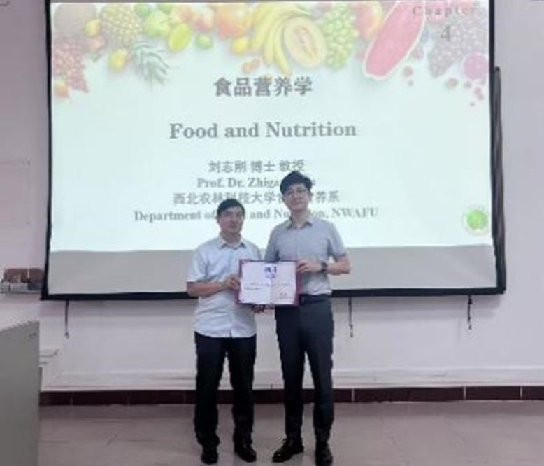 2024年10月24至25日,公司邀请西北农林科技大学伟德国际1946官网刘志刚教授来校讲授冬季小学期课程。本次授课对象为2022级食品科学与工程及食品质量与安全专业的本科生,授课内容为《食品营养学》,授课专题分别为脂质代谢与调节、脂质营养与健康。陈文学副经理对刘志刚教授的到来表示热烈欢迎,并为其颁发聘书。
