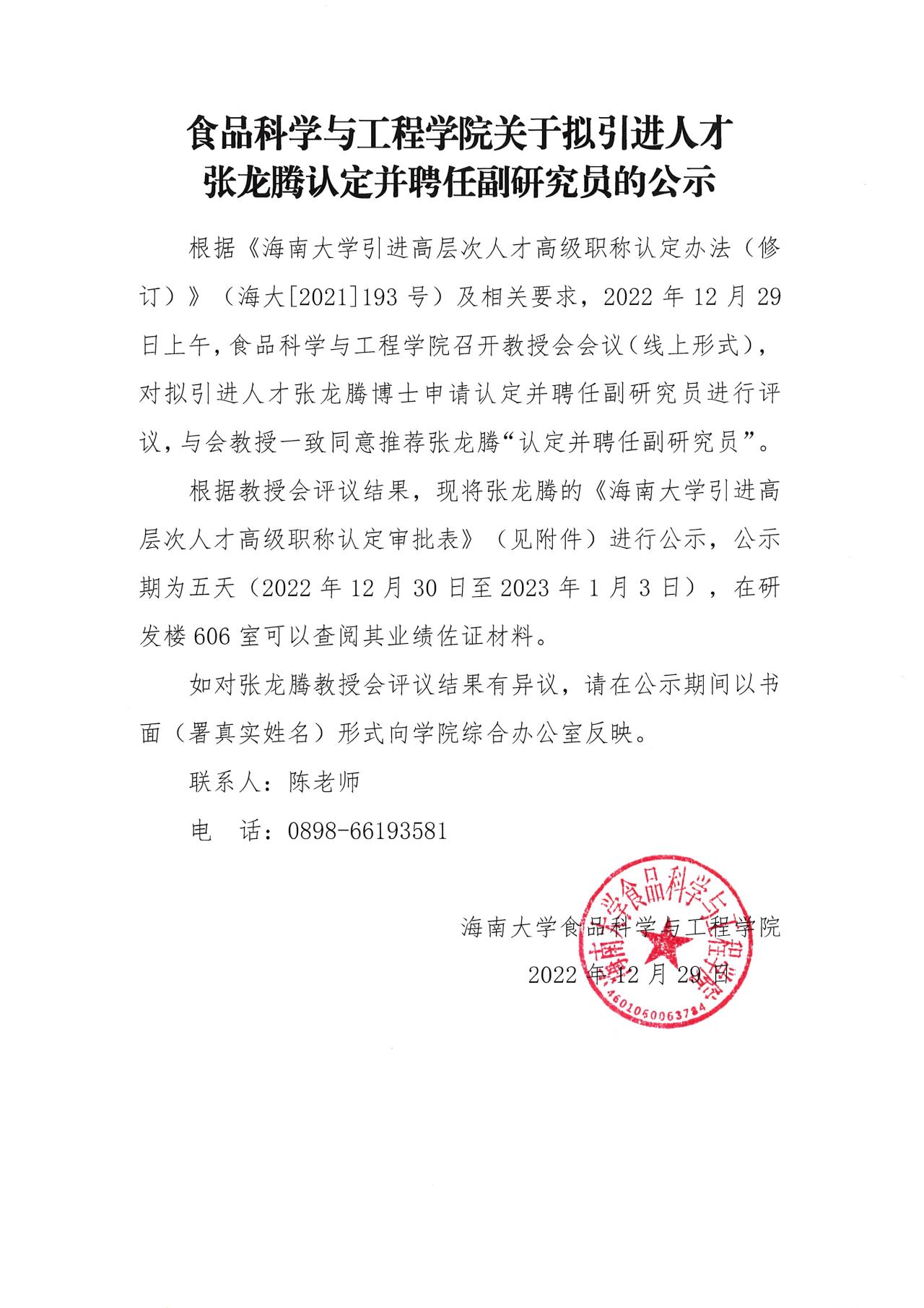 伟德国际1946官网关于拟引进人才张龙腾认定并聘副研究员公示
